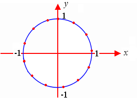We plot our 13 points, starting at `(0, 1)` as follows (we move clockwise in this example, and I have numbered the points):