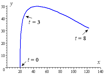 (i) Sketch the curve for 0 ≤ t ≤ 8.