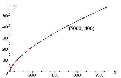 We only need the last value, `x = 3sqrt(10)~~ 9.4868\ "km"` (This value is consistent with the graph above).