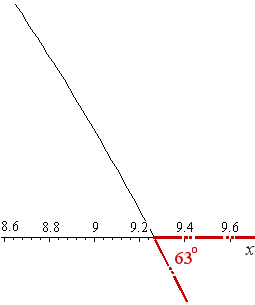 `arctan\ (-18.97366596)/9.48683298` `=-1.107148718`