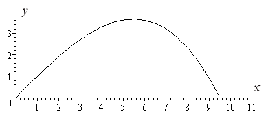 We can see that this answer is reasonable by zooming in on the portion of the graph where the rocket hits the ground (with equal-axis scaling):