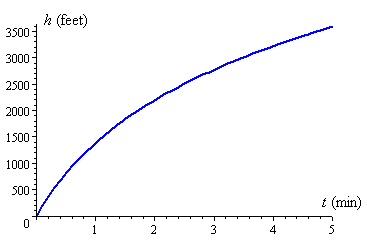 The graph of h = 2000 ln (t + 1) shows that it is a realistic model for the climb performance of a light aircraft. At low altitudes, where the air is more dense, the rate of climb is good, but as you go higher, the rate decreases.