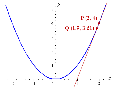 Now if Q is moved to `(1.99,3.9601)`, then slope PQ is `3.99`.