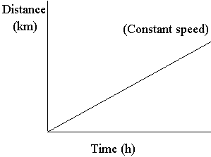 This general graph represents the motion of a body travelling at constant velocity. The graph is linear (that is, a straight line).