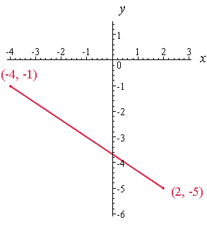 Find the slope of the line joining the points (−4, −1) and (2, −5).