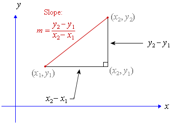Slope `= (y_2 - y_1)/(x_2 - x_1)`