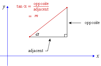 `tan\ alpha=text(opposite)/text(adjacent)`