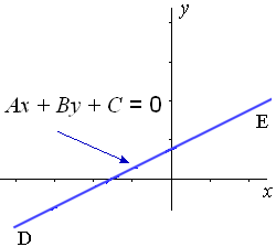 Let's start with the line Ax + By + C = 0 and label it DE. It has slope `-A/B`.