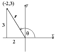 `r=sqrt(x^2+y^2)` `=sqrt((-2)^2+3^2)` `=sqrt(4+9)=sqrt13`