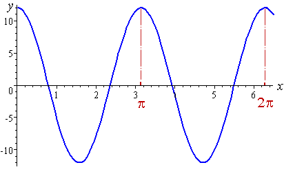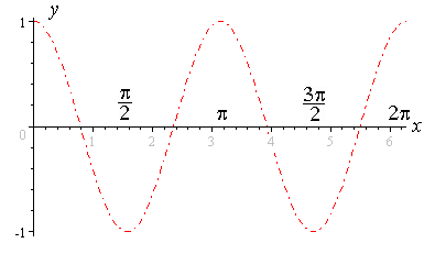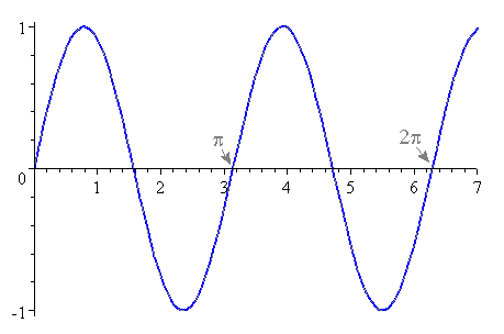 The `x`-axis has an integer scale (it's radians, of course), and multiples of `pi` are indicated with a red stroke.