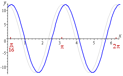 This means we need to move the cosine graph to the right of its normal position (because the displacement is positive in this example) by `pi/16`.