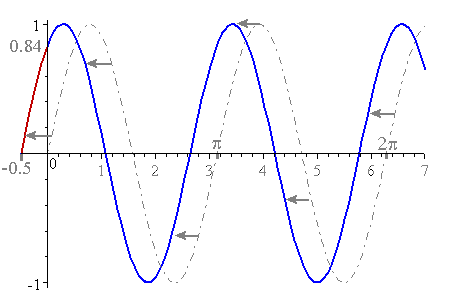 This means we have to shift the curve to the left (because the phase shift is negative) by `0.5`. Here is the answer (in green). I have kept the original y = sin 2x (in dotted gray) so you can see what's happening.